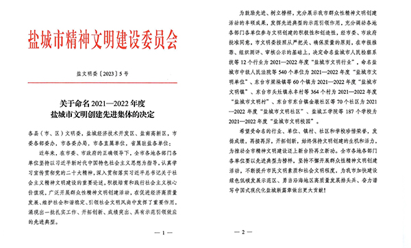 • 喜報(bào)!海興集團(tuán)榮獲“鹽城市文明單位”稱號(hào)